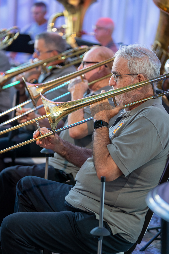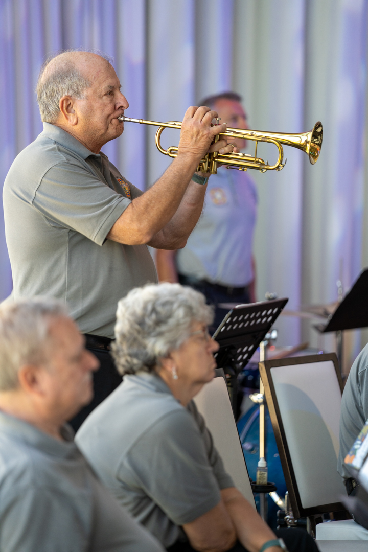 The Band Rehearses one night each week and “NEW” members are invited to join to make music and socialize. Join us – you’ll be glad you did!